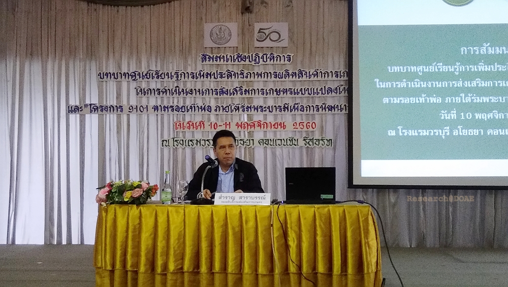 กองวิจัยฯ ร่วมสัมมนาบทบาท ศพก. ในการดำเนินงานแปลงใหญ่ และโครงการ 9101 ตามรอยเท้าพ่อฯ 21 พฤศจิกายน 2017 นายสำราญ สาราบรรณ์ ร