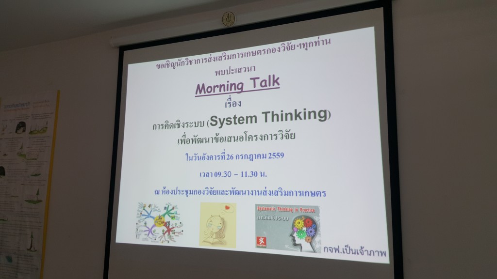 คณะทำงานการจัดการความรู้ ได้จัดเวที Morning Talk เรื่อง การคิดเชิงระบบ System Thinking 28 กรกฎาคม 2016 คณะทำงานการจัดการควา