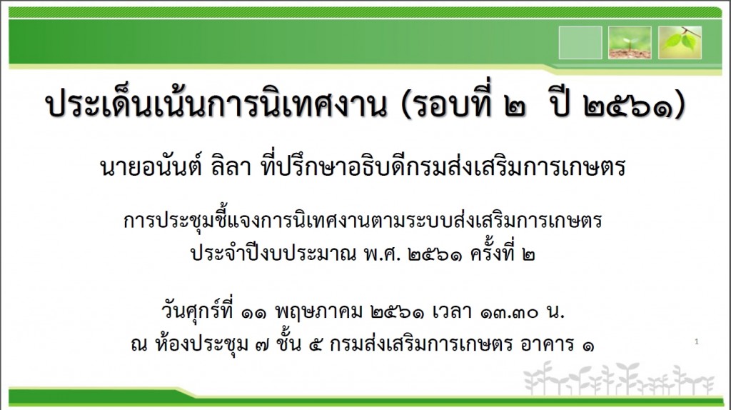 ประเด็นเน้นย้ำในการนิเทศงานตามระบบส่งเสริมการเกษตร รอบที่ 2 ปี 2561 16 พฤษภาคม 2018 ประเด็นเน้นย้ำการนิเ
