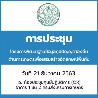 การประชุมโครงการพัฒนาฐานข้อมูลภูมิปัญญาท้องถิ่นด้านการเกษตรเพื่อเสริมสร้างอัตลักษณ์พื้นถิ่น 21 ธันวาคม 2020 คู่มือโครงการ วาระกา