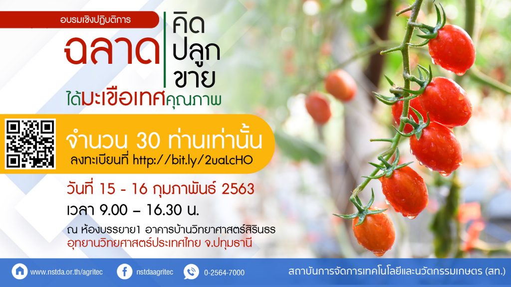 สวทช. เปิดรับสมัคร!! ร่วมอบรมหลักสูตร “ฉลาดคิด ฉลาดปลูก ฉลาดขาย ให้ได้มะเขือเทศคุณภาพ” 21 มกราคม 2020 รายละเอียดเพิ่มเติม