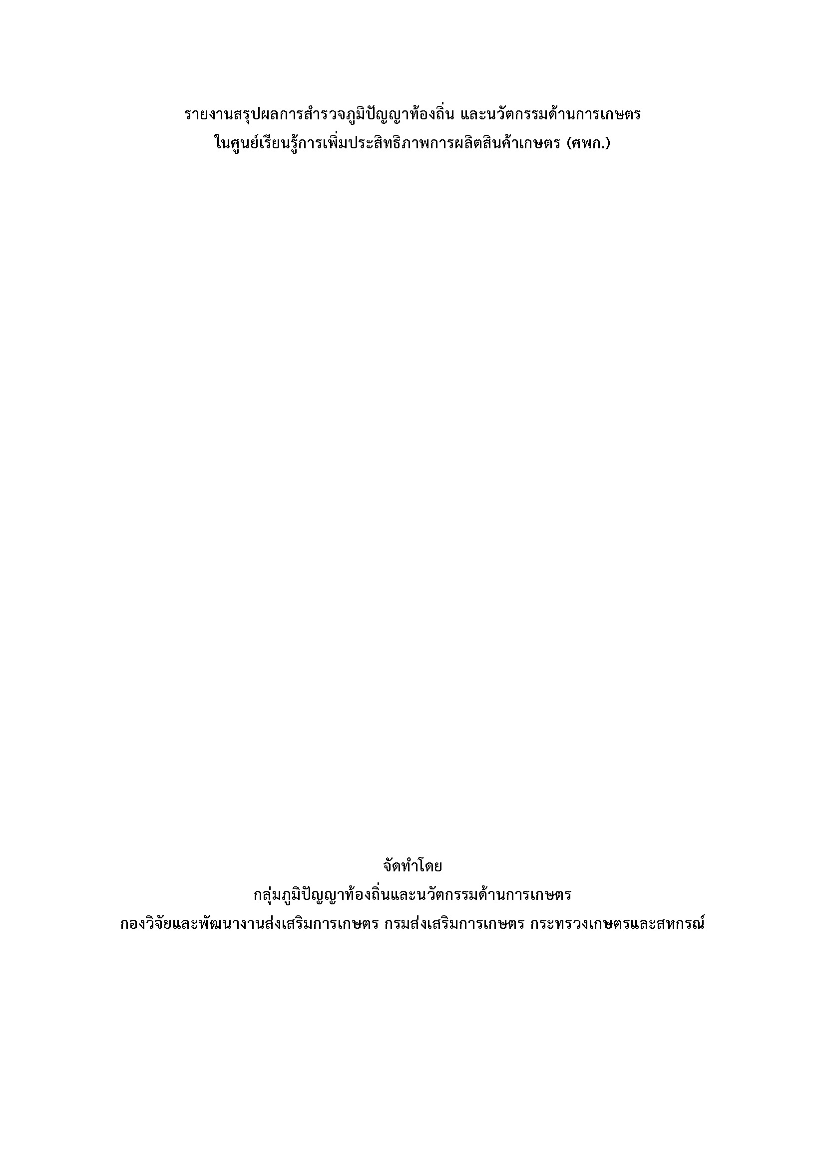 รายงานสรุปผลการสำรวจภูมิปัญญาท้องถิ่น และนวัตกรรมด้านการเกษตร ในศูนย์เรียนรู้การเพิ่มประสิทธิภาพการผลิตสินค้าเกษตร (ศพก.) 14 ธันวาคม 2020