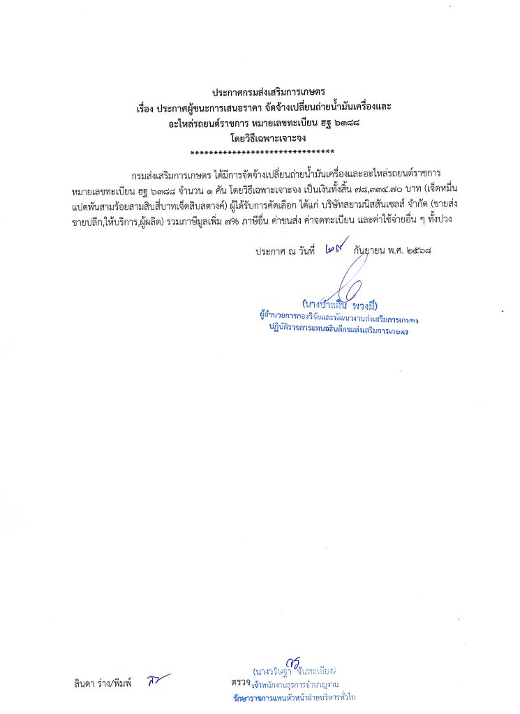 ประกาศผู้ชนะการเสนอราคา จัดจ้างเปลี่ยนถ่ายน้ำมันเครื่องและอะไหล่รถยนต์ราชการ หมายเลขทะเบียน ฮฐ 6388 โดยวิธีเฉพาะเจาะจงBy Admin_Research2015 / 30 กันยายน 2025