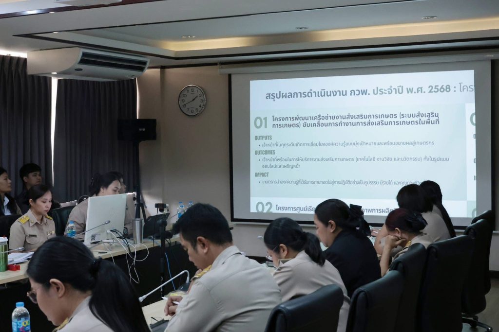 ในการประชุมดังกล่าว กองวิจัยและพัฒนางานส่งเสริมการเกษตรได้นำเสนอข้อมูลด้านอัตรากำลัง บทบาทภารกิจ