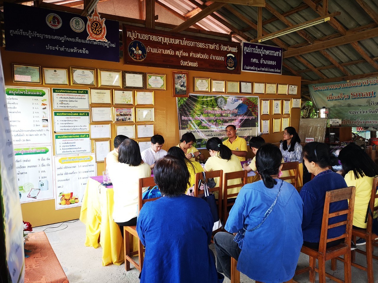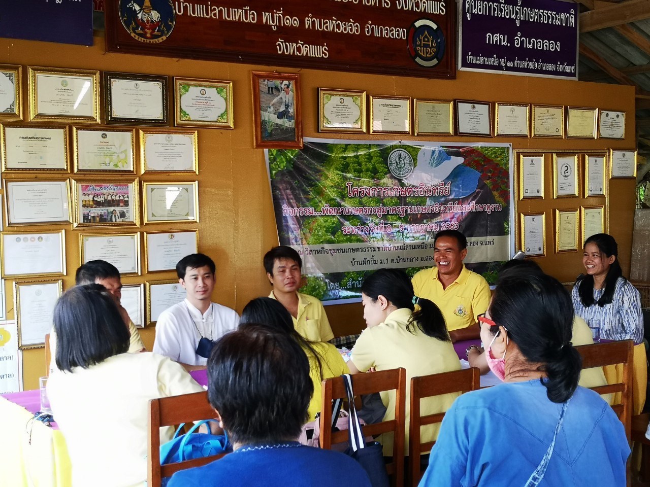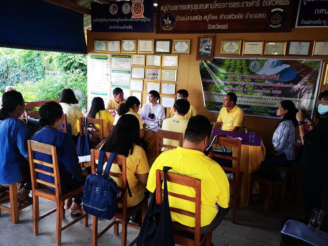 นายสุริยา ขันแก้ว และศึกษา ดูงานแปลงเรียนรู้การปลูกผัก GAP โดยมีผักที่ได้รับใบรับรอง GAP ทั้งหมด 6 ชนิด คือ บวบเหลี่ยม ฟักทอง ผักบุ้งจีน กระเพรา ผักสลัด ข่า และคะน้า ณ ศพก.เครือข่าย ศูนย์เรียนรู้เศรษฐกิจพอเพียงและเทคโนโลยี อำเภอลอง จังหวัดแพร่ พร้อมด้วยเจ้าหน้าที่สำนักงานเกษตรจังหวัดแพร่ และ เจ้าหน้าที่สำนักงานเกษตรอำเภอลอง จังหวัดแพร่