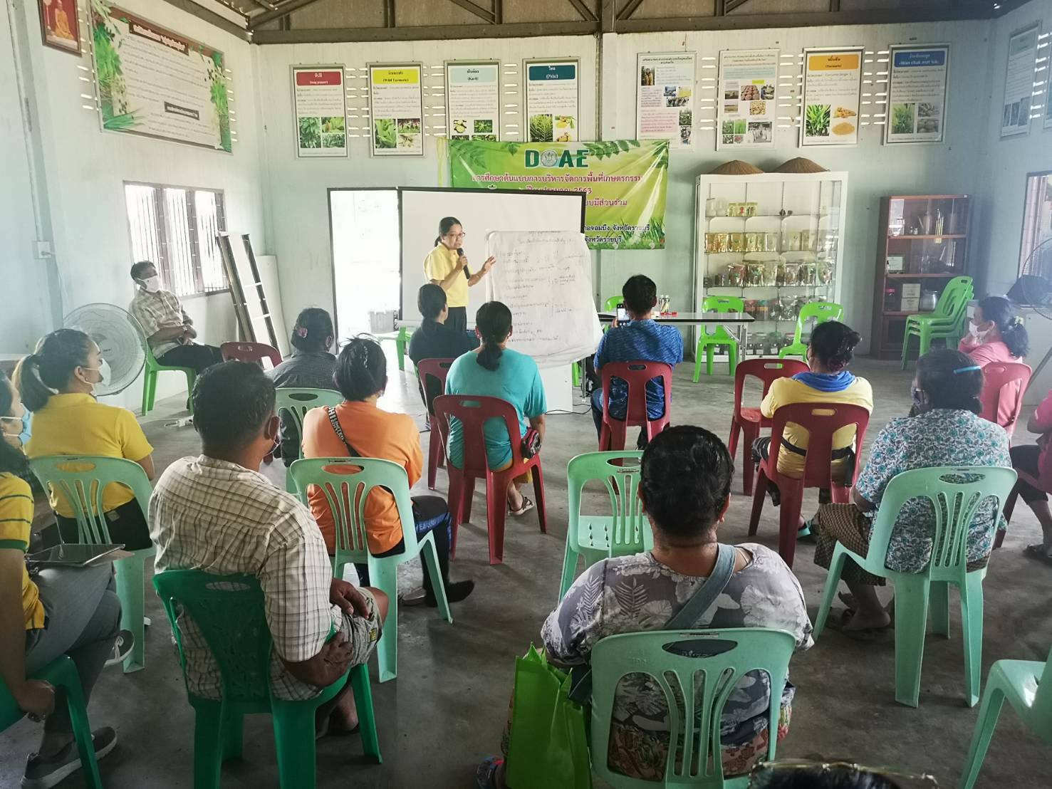 10 กรกฎาคม 2563 นางอมรรัฎฐ์ ชื่นมาลัย นักวิชาการเกษตรชำนาญการ พร้อมด้วยนางสาววิไลพร ชวศรี นักวิชาการส่งเสริมการเกษตรชำนาญการ และนายณภัทร พุกกะรัตน์ นักวิชาการแผนที่ภาพถ่าย ได้เข้าร่วมกิจกรรมการจัดเวที ครั้งที่ 5 ของโครงการศึกษาต้นแบบฯ ณ วิสาหกิจชุมชนกลุ่มผลิตและจำหน่ายพืชสมุนไพรบ้านด่านทับตะโก อ.จอมบึง จ.ราชบุรี โดยในเวทีนี้เน้นการสรุปกิจกรรม บทเรียนและคืนความรู้ให้แก่ชุมชนเป็นหลัก เพื่อทบทวนแนวทาง บทบาท การทำงานของคนในกลุ่มและชุมชนในการนำไปใช้ต่อไป
