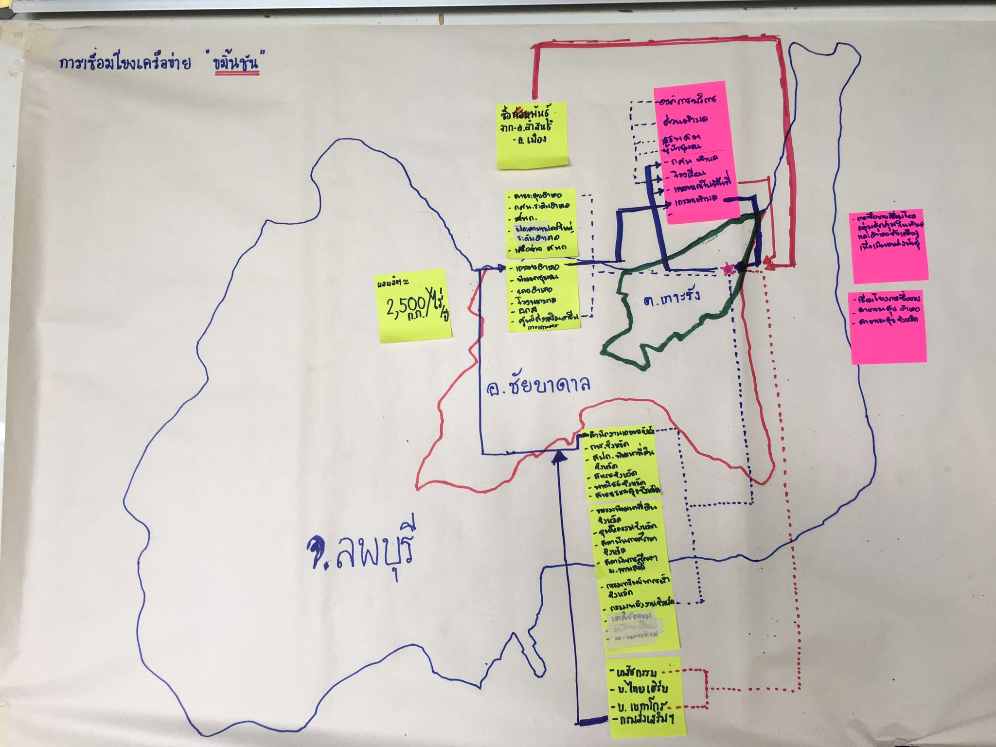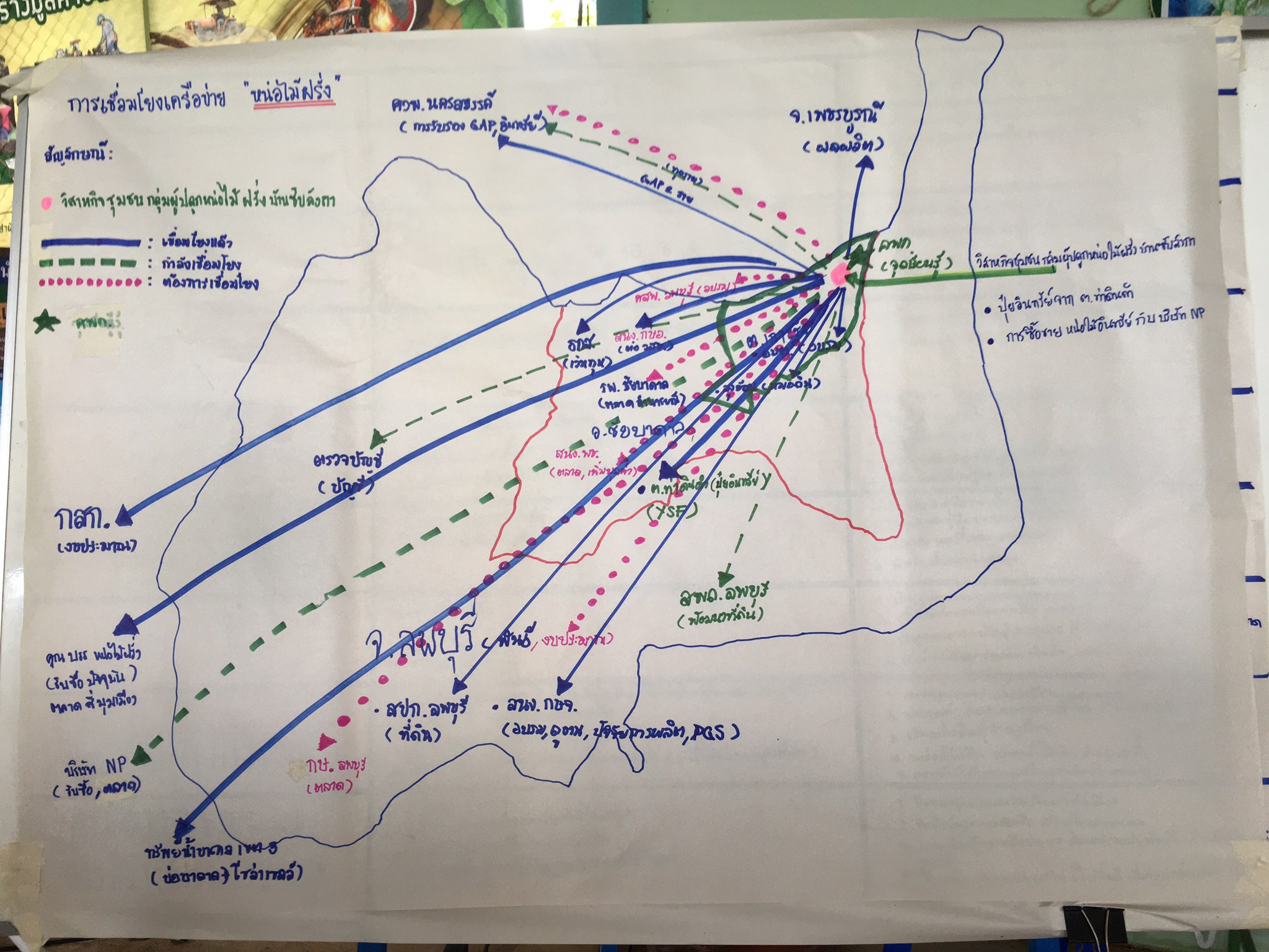 ครั้งที่ 4 กับเกษตรกรในพื้นที่ พร้อมกับเจ้าหน้าที่จากสำนักงานเกษตรอำเภอชัยบาดาล เจ้าหน้าที่จากสำนักงานเกษตรจังหวัดลพบุรี โดยในเวทีครั้งนี้ เป็นการทบทวนสรุปผลจากเวทีเรียนรู้จากเวทีที่ 3 และจัดกระบวนการเรียนรู้เพื่อพัฒนาและเพิ่มประสิทธิภาพระบบการบริหารจัดการกลุ่ม/เครือข่าย พร้อมวิเคราะห์การเชื่อมโยงผู้มีส่วนเกี่ยวข้องในพื้นที่และเครือข่าย รวมทั้งสรุปบทเรียน ณ ศูนย์เรียนรู้การเพิ่มประสิทธิภาพการผลิตสินค้าเกษตร อำเภอชัยบาดาล จังหวัดลพบุรี