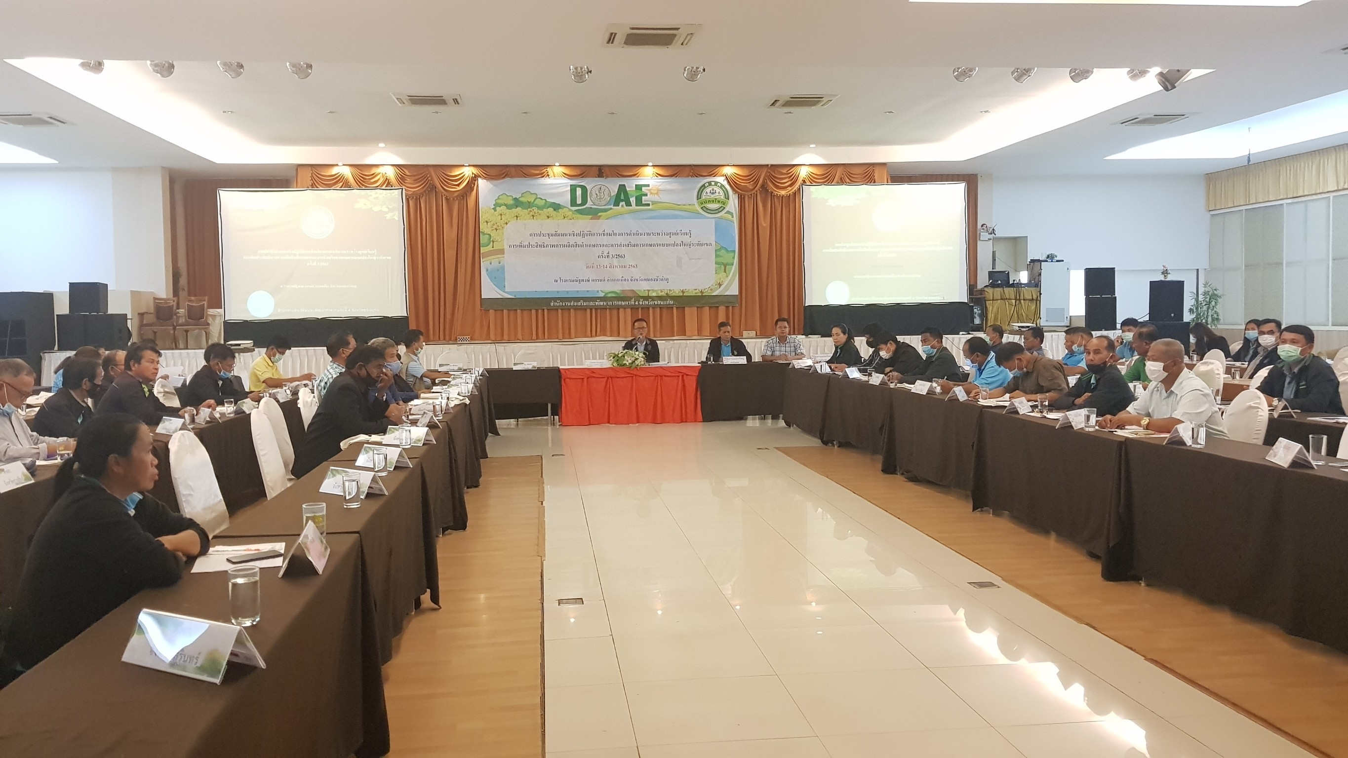 การส่งเสริมการเกษตรแบบแปลงใหญ่ เขตที่ 4 จ.ขอนแก่น ณ โรงแรมณัฐพงษ์ แกรนด์ จ.หนองบัวลำภู โดยในเวทีมีการประชุมสัมนาเชื่อมโยงการดำเนินงานระหว่างศูนย์เรียนรู้การเพิ่มประสิทธิภาพการผลิตสินค้าเกษตร (ศพก.) และการส่งเสริมการเกษตรแบบแปลงใหญ่ ระดับ เขตครั้งที่ 3/2563 เพื่อร่วมชี้แจงและหารือในประเด็น :