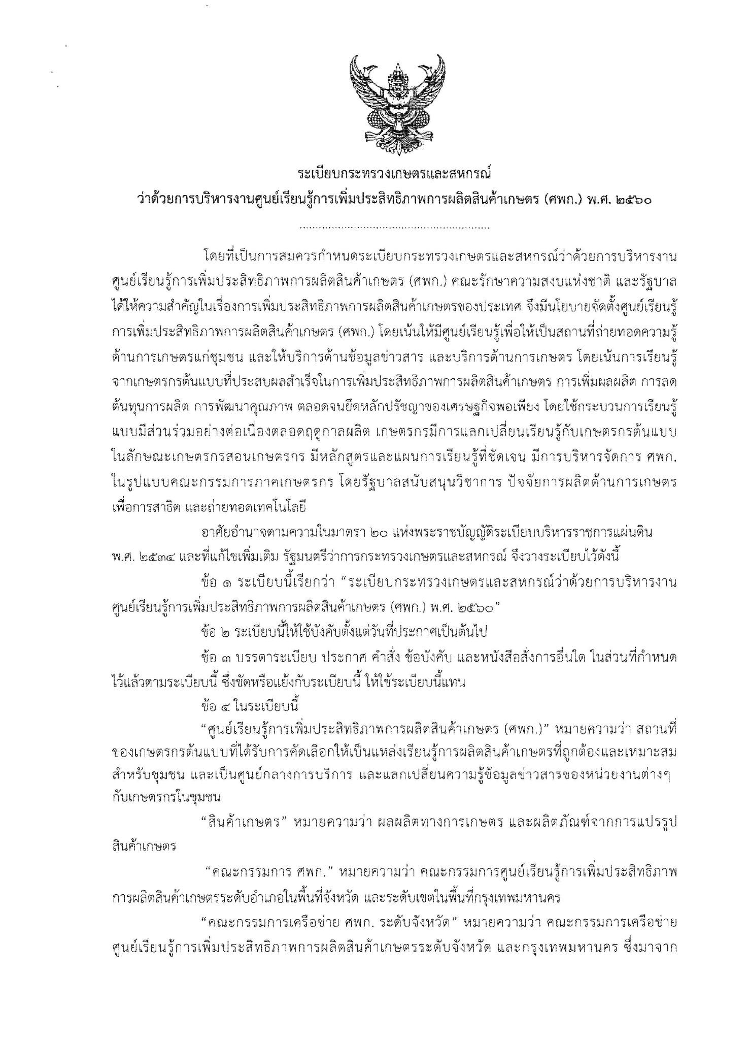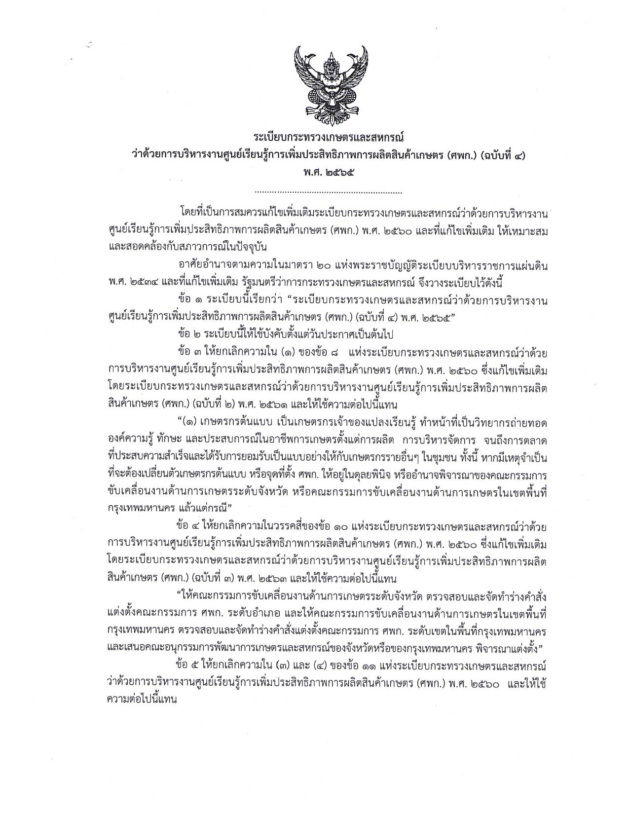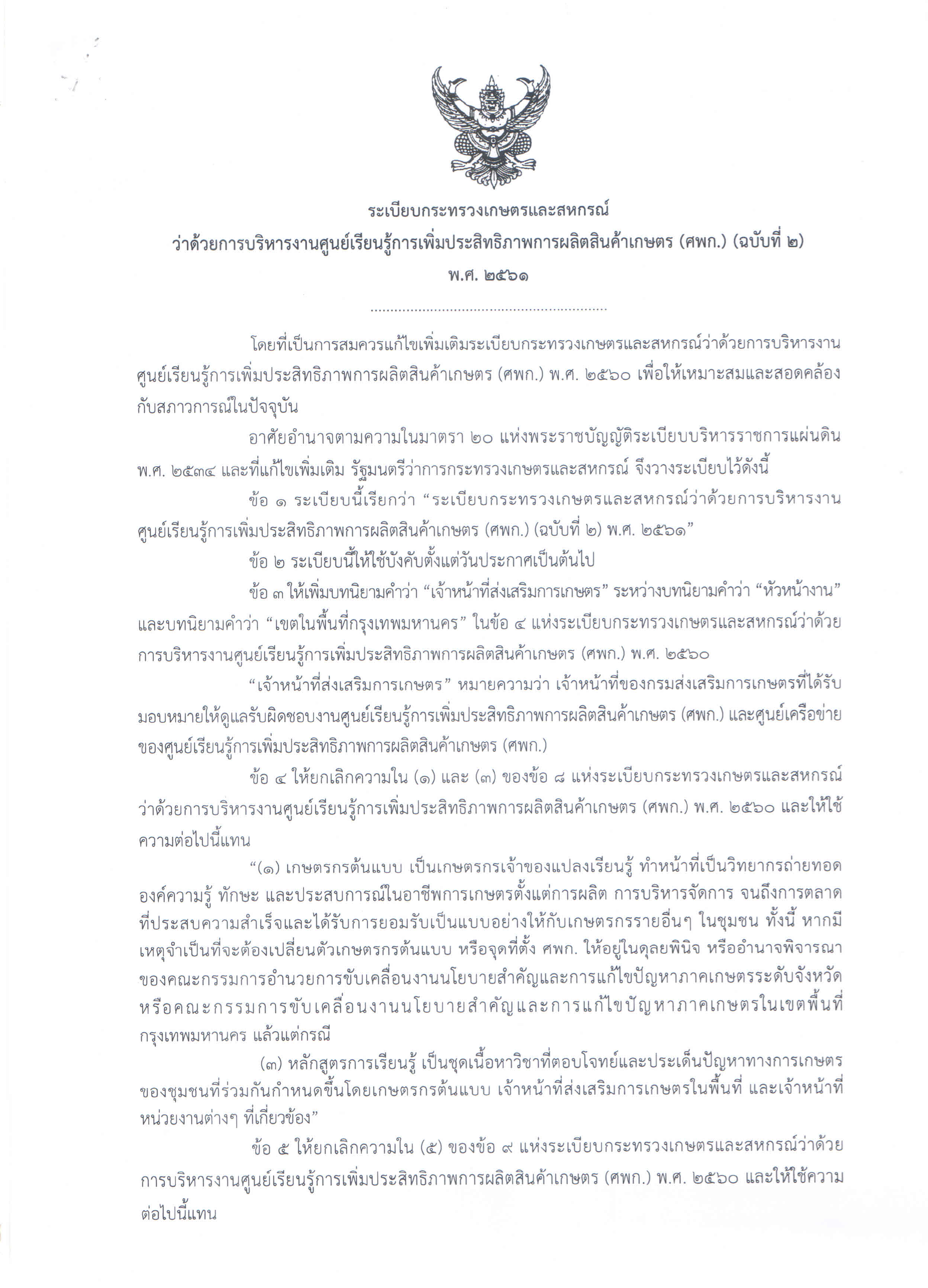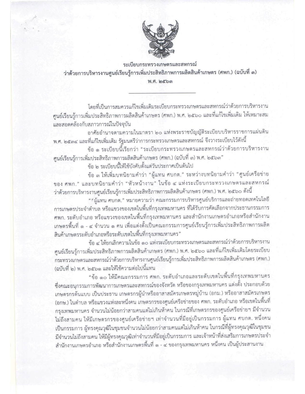 การเกษตร ทั้งในเชิงนโยบายและระดับพื้นที่ให้บรรลุเป้าหมาย ตามวัตถุประสงค์